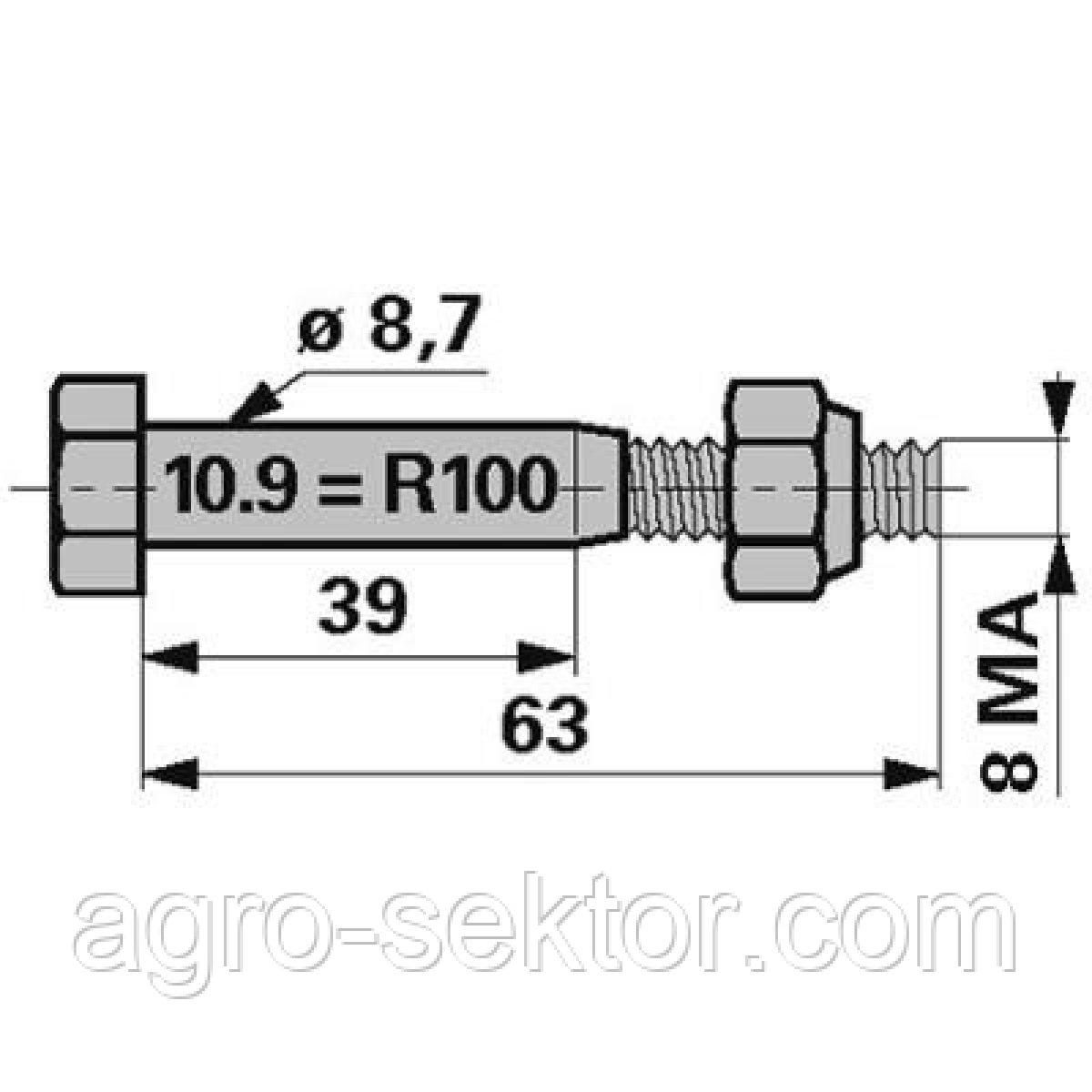 Болт зрізний маховика 8,65x57 мм на преспідбирач John Deere 58.621 DC17882 BP14125 + E50101