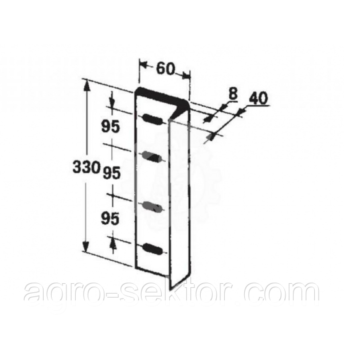 Ніж рухомий поршня 330х60 4 отвори прес-підбирача Welger AP38 AP52 58.446.19 JAG50-0040 1122.16.04.01.01 0982.25.08.00